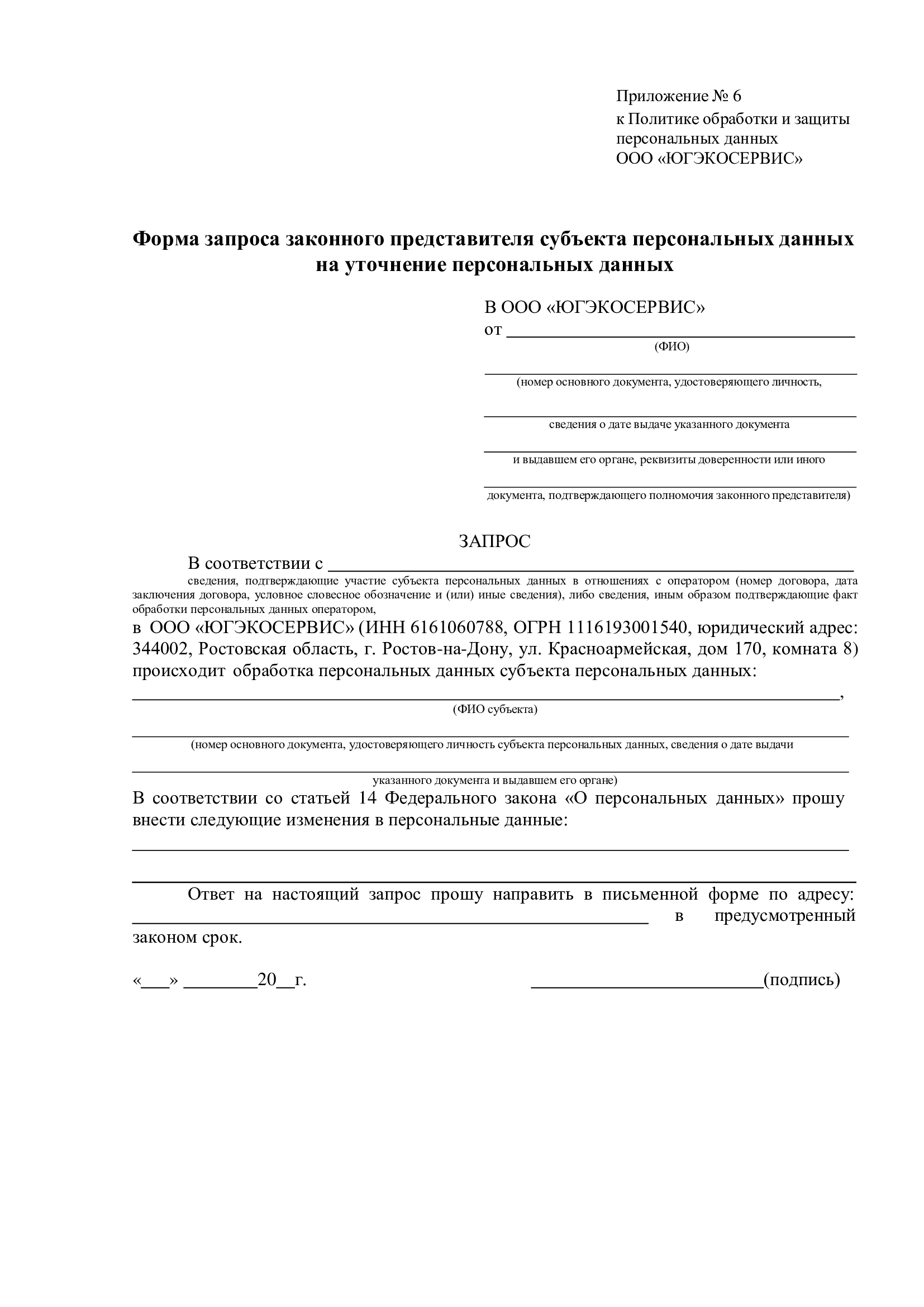 1.4.2. Субъект персональных данных вправе требовать от Общества, осуществляющего обработку его персональных данных, их уточнения, блокирования или уничтожения в случаях, когда такие данные являются неполными, устаревшими, недостоверными, полученными с нарушением законодательства либо не соответствующими заявленным целям обработки, а также может принимать законные меры для защиты своих прав.
